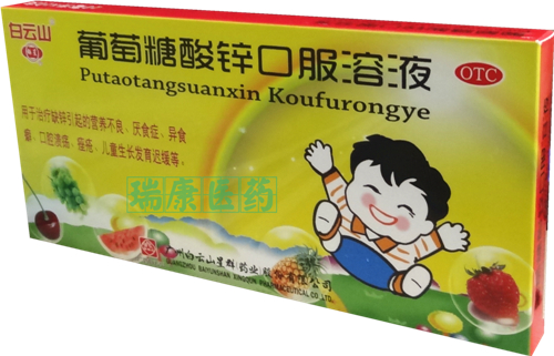 主治疾?。喝变\ 葡萄糖酸鋅口服溶液,抗缺鋅癥藥。用于治療缺鋅引起的兒童生長發(fā)育遲緩、營養(yǎng)不良、厭食癥、異食癖、口腔潰瘍、痤瘡等。不宜空腹服用.過量服用,可影響銅、鐵離子的代謝,故應在確證缺鋅時使用,如需長期服用,必須在醫(yī)生指導下使用;忌與四環(huán)素、多價磷酸鹽、青霉胺等藥物同時服用。