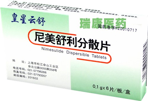 藥品名稱:尼美舒利分散片 (皇星云舒)