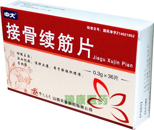 接骨續(xù)筋片為糖衣片,除去糖衣后顯灰褐色;氣微,味微苦、澀。 活血化瘀,消腫止痛。用于軟組織損傷、骨折等。